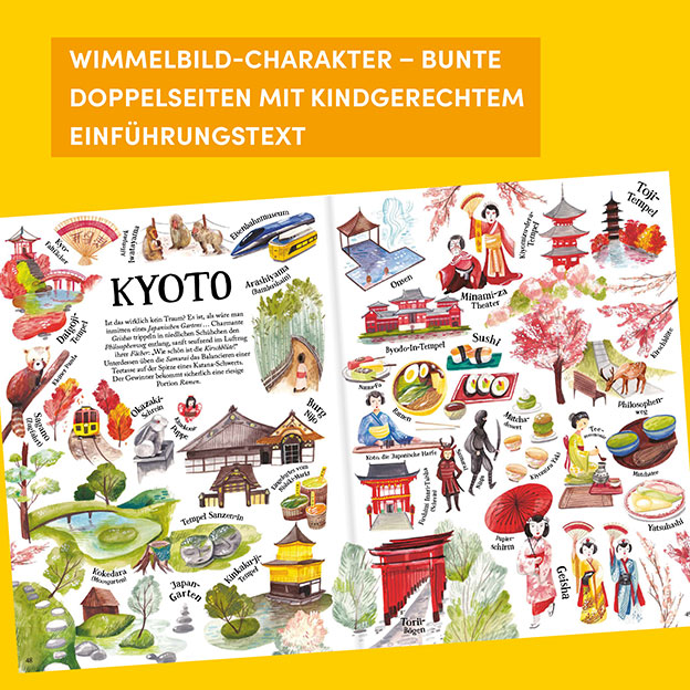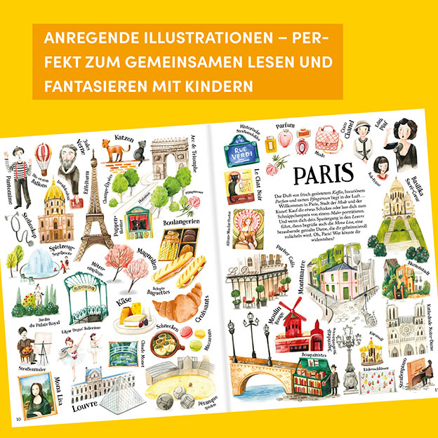 - Zahlreiche Illustrationen zeigen die Wahrzeichen, Kultur, Essen und Sehenswürdigkeiten