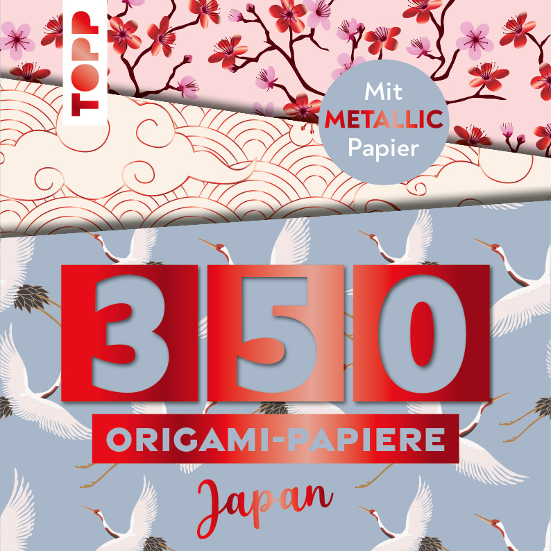 350 Falt-Papiere (14 x14 cm, 80 g/m²), in 25 Designs, davon 50 Papiere mit Metallic-Folie, 20 Seiten Origami-Grundkurs, Softcover
