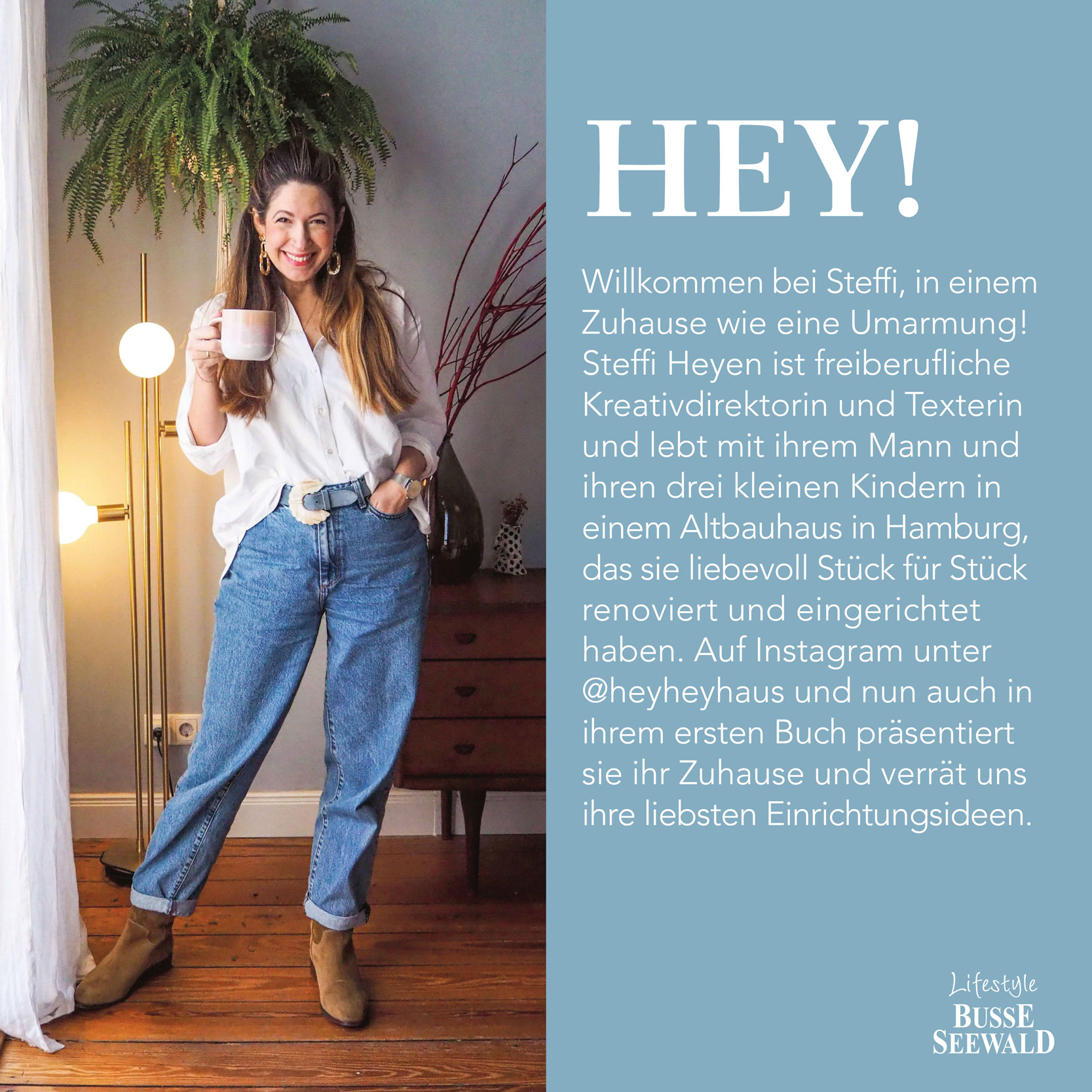 Steffis Wohn- und Einrichtungsstil passt in keine Schublade: Ihr Zuhause atmet Entschleunigung, Selbstfürsorge und Familienleben – nichts muss, nur gemütlich muss es sein. Die dreifache Mutter präsentiert ihrer Community auf Instagram unter @heyheyhaus und nun auch in ihrem ersten Buch ihren mit viel Liebe sanierten Altbau und verrät uns ihre liebsten Einrichtungsideen. In unterhaltsamen Kurztexten, die zu einer Kaffeepause einladen, teilt die Kreativdirektorin zudem ihre Gedanken mit uns zu Themen wie Nichts-Müssen-Müssen oder: Wer ist eigentlich Marie Kondo?