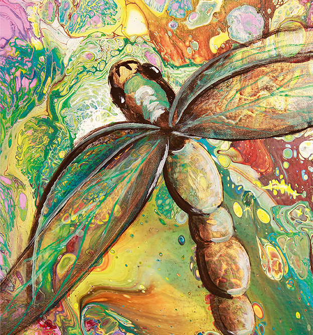 Mit unseren Tipps und Tricks lernen Sie, sowohl fantasievolle als auch realistische Bilder mit Pouring-Techniken zu gestalten. So erfahren Sie auf den folgenden Seiten, wie Sie gezielt Grundrichtungen anlegen, Motive erkennen und sogar aus vermeintlich danebengegangenen Bildern noch einiges herausholen.