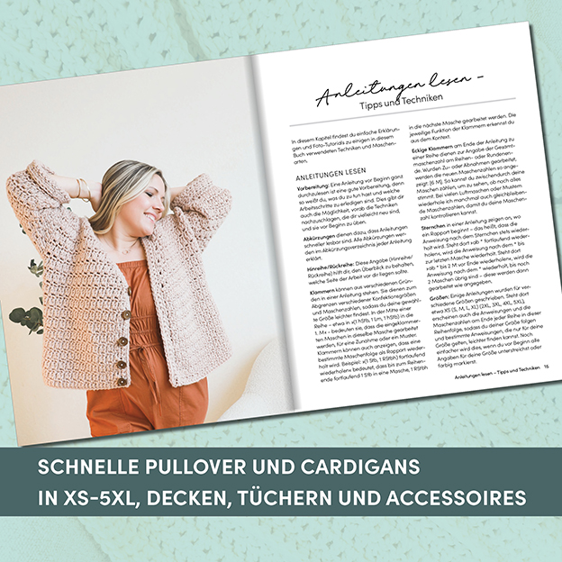 Meine Häkelauszeit mit schnellen Pullovern und Cardigans in XS-5XL, Decken, Tüchern und Accessoires