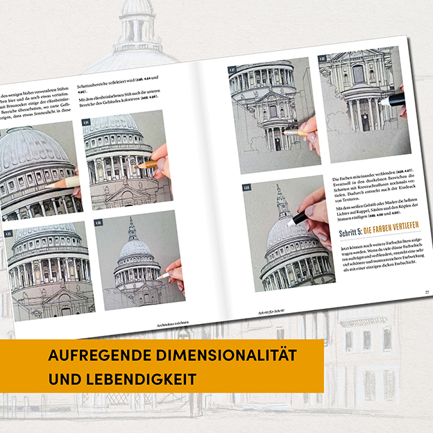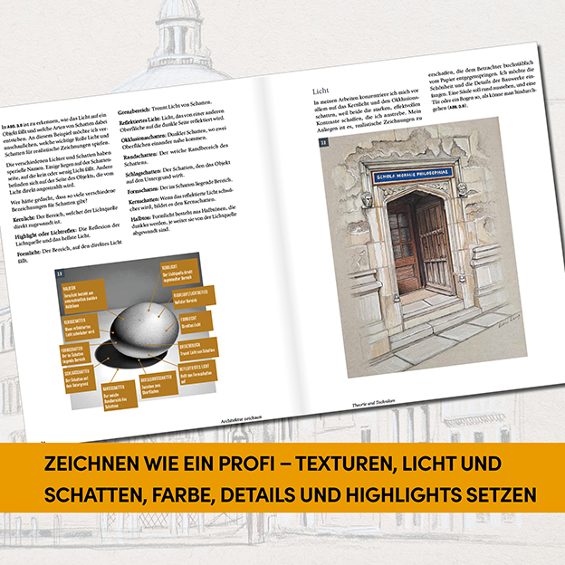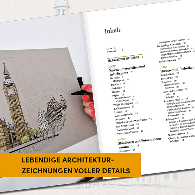 Bauwerke zeichnen und farbig illustrieren