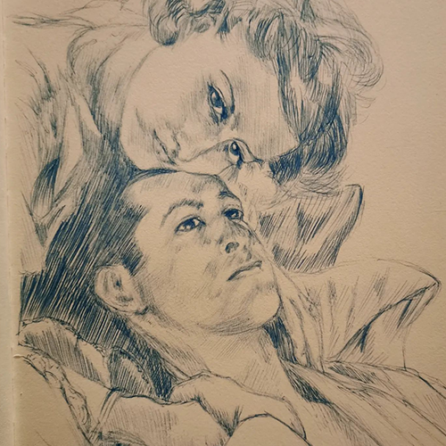 andere Stiltechnik verbindet Malerei und Zeichnung so gut in einem Werk wie diese. Das Vorzeichnen mit Bleistift auf deinem