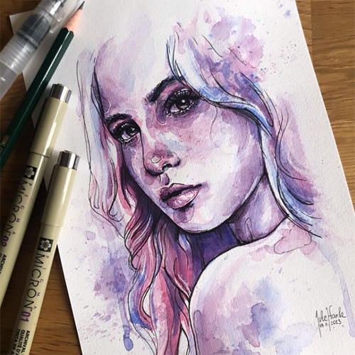 Das Malen mit Aquarellfarben auf einer Fineliner Zeichnung ist eine besondere Kombination für experimentelle Bilder. Keine