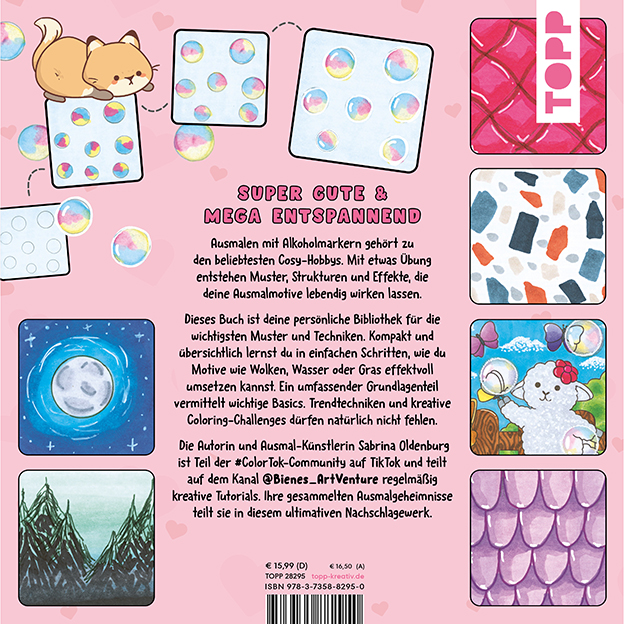 Die Autorin und Ausmal-Künstlerin Sabrina Oldenburg ist Teil der #ColorTok-Community auf TikTok und teilt auf dem Kanal @Bienes_ArtVenture regelmäßig kreative Tutorials. Ihre gesammelten Ausmalgeheimnisse teilt sie in diesem ultimativen Nachschlagewerk!
