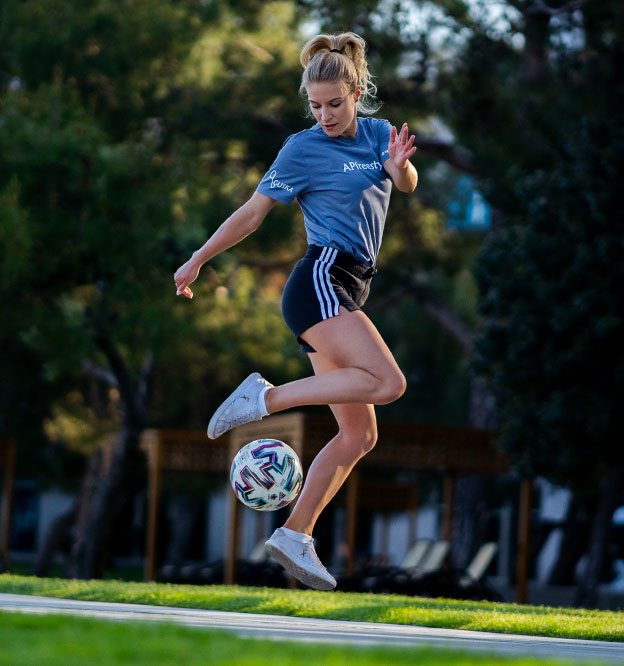 Aguśka Mnich ist professionelle Freestyle Footballerin, dreifache Weltmeisterin, zweifache Europameisterin und Inhaberin eines Guinnes-Weltrekords. Und auch Fußballstars wie Neymar, Kylian Mbappe, Marquinhos, Nuno Mendes oder Xavi Simons konnten die beiden schon mit ihrem Ballgefühl, ihrer Körperbeherrschung und ihrem Show-Talent zum Staunen bringen. Aguśka & Patrick absolvieren Live-Performances weltweit, treten regelmäßig im Umfeld zahlreicher großer Sportveranstaltungen auf und geben Workshops. Aguśka kommt gebürtig aus Polen, Patrick aus Deutschland.