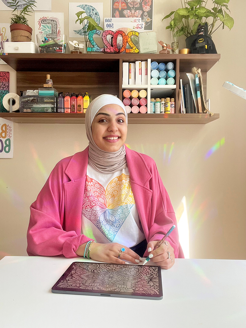 Farah Alhamawi ist eine jordanische Künstlerin, die momentan in Istanbul lebt. Als Farah.brightart teilt sie auf ihrem 2017 gegründeten instagram-Account ihre bunten und fröhlichen Designs mit über 190k Followern. Auf ihrem etsy-Shop verkauft sie Sticker, Drucke, Lesezeichen und Originale.