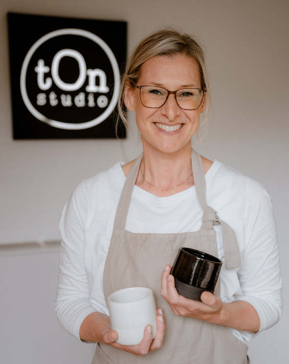 Die gebürtige Fränkin lebt mit ihrer Familie im Nürnberger Norden. Töpfern und Keramik waren lange ein Ausgleich zu ihrem Job als Grafikdesignerin und Fotografin. 2020 machte sie ihr Hobby zum Beruf und gründete das Tonstudio. Ihrem Job als Grafikerin ist sie zwar noch treu geblieben, die meiste Zeit verbringt Steffi aber in ihrer Keramikwerkstatt. Auf ihrem Instagram-Profil @tonstudio_keramikwerkstatt oder im Onlineshop unter www.tonstudio.shop können Sie einen Blick hinter die Kulissen des Tonstudios werfen.