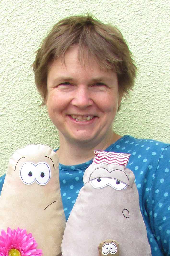 Sie verbringen jede freie Minute mit z. B. Stricken, Häkeln, Sticken, Malen, Knüpfen, Basteln, Sägen und Entwerfen von praktisch-schönen Dingen mit dem für sie typischen Gute-Laune-Design.
