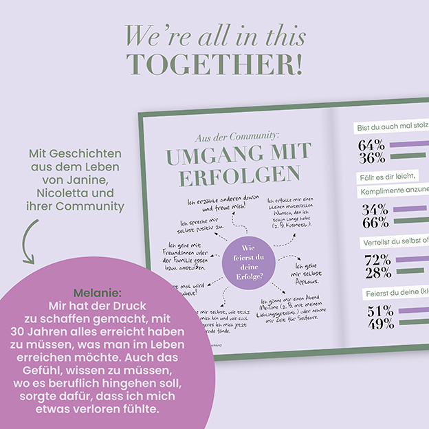 Ob Fragen rund um Beziehung, Liebe und Freundschaft, Angst vor Veränderungen und Neuanfängen oder Unsicherheiten in Bezug auf Ausbildung, Berufseinstieg, Karriere oder Finanzen – in diesem Buch findest du Tipps, Ratschläge und Geschichten zu allen Themen, die dich beschäftigen. Und das aus erster Hand von Janine und Nicoletta, die selbst mitten in ihren 20ern stecken. Janine und Nicoletta haben auf ihrem Instagram-Kanal @themillennials_club einen Safe Space geschaffen, an dem sie offen über alles sprechen, was sie in ihrem Leben umtreibt. Die authentischen Geschichten aus ihrem Alltag versammeln sie nun in diesem Buch und zeigen dir damit: Du bist nicht allein! Denn in den 20ern haben wir alle mit ähnlichen Problemen, Unsicherheiten, Fragen und Herausforderungen zu kämpfen. Egal ob es um Liebe, Freundschaft, Beziehungen, Berufswahl, Karriere, Finanzen, Berufseinstieg, Wünsche, Träume, Veränderungen oder Zukunftspläne geht – hier findest du praktische Ratschläge und Tipps, die Janine und Nicoletta aus ihren Erfahrungen gewonnen haben. Die Anekdoten aus dem Leben der Autorinnen und ihrer Community laden zum Schmunzeln, Nachdenken und Wiedererkennen ein. Reflexionsfragen, Denkanstöße und Übungen helfen dir dabei, deinen eigenen Weg zu finden und deine 20er zu meistern. Lass dich von Janine und Nicoletta auf deiner Reise zu dir selbst und durch diesen aufregenden Lebensabschnitt begleiten und hole dir Inspiration und Unterstützung.