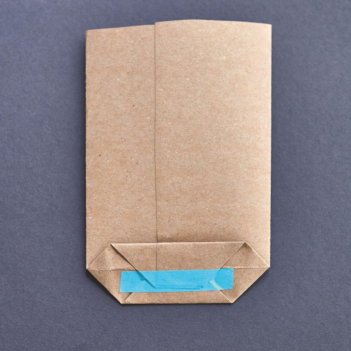 Verwende Klebstoff oder befestige doppelseitiges Klebeband an einer der langen Seiten und klebe die gefalteten Seiten zusammen.