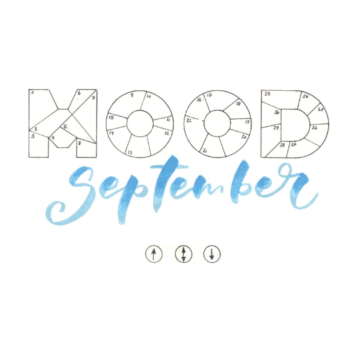 Unter den MOOD-Tracker wird mit einem Brush Pen in der Lieblingsfarbe der Name des Monats geschrieben.