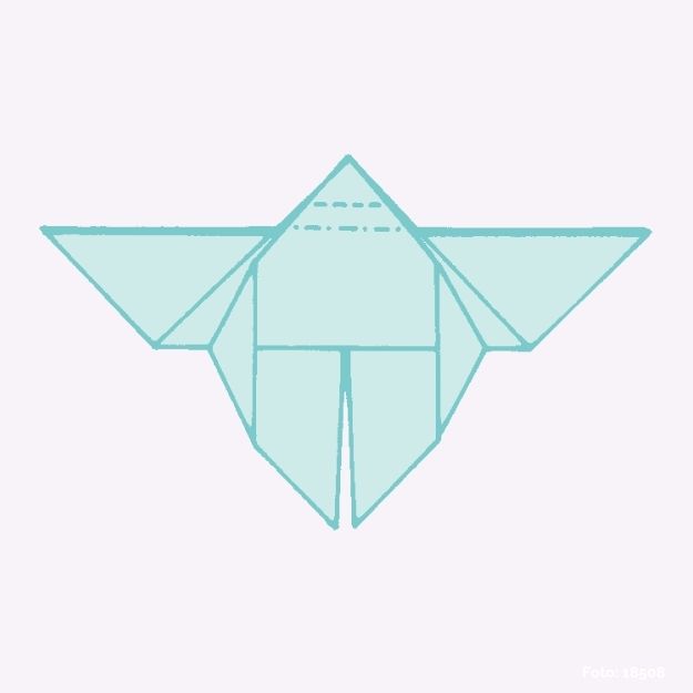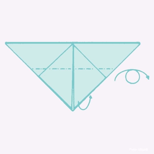 Die untere Spitze an der Strichpunktlinie nach hinten falten und die Figur wenden.