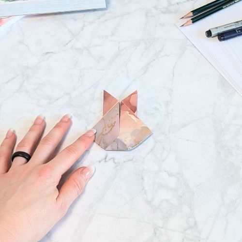 Wende das Papier und falte es oben an den Ohren nach unten.