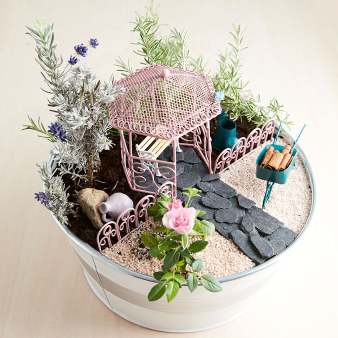 Die bezaubernden Mini-Gärten sind liebevoll mit kleinen Details versehen. Da macht das Basteln richtig Spaß.