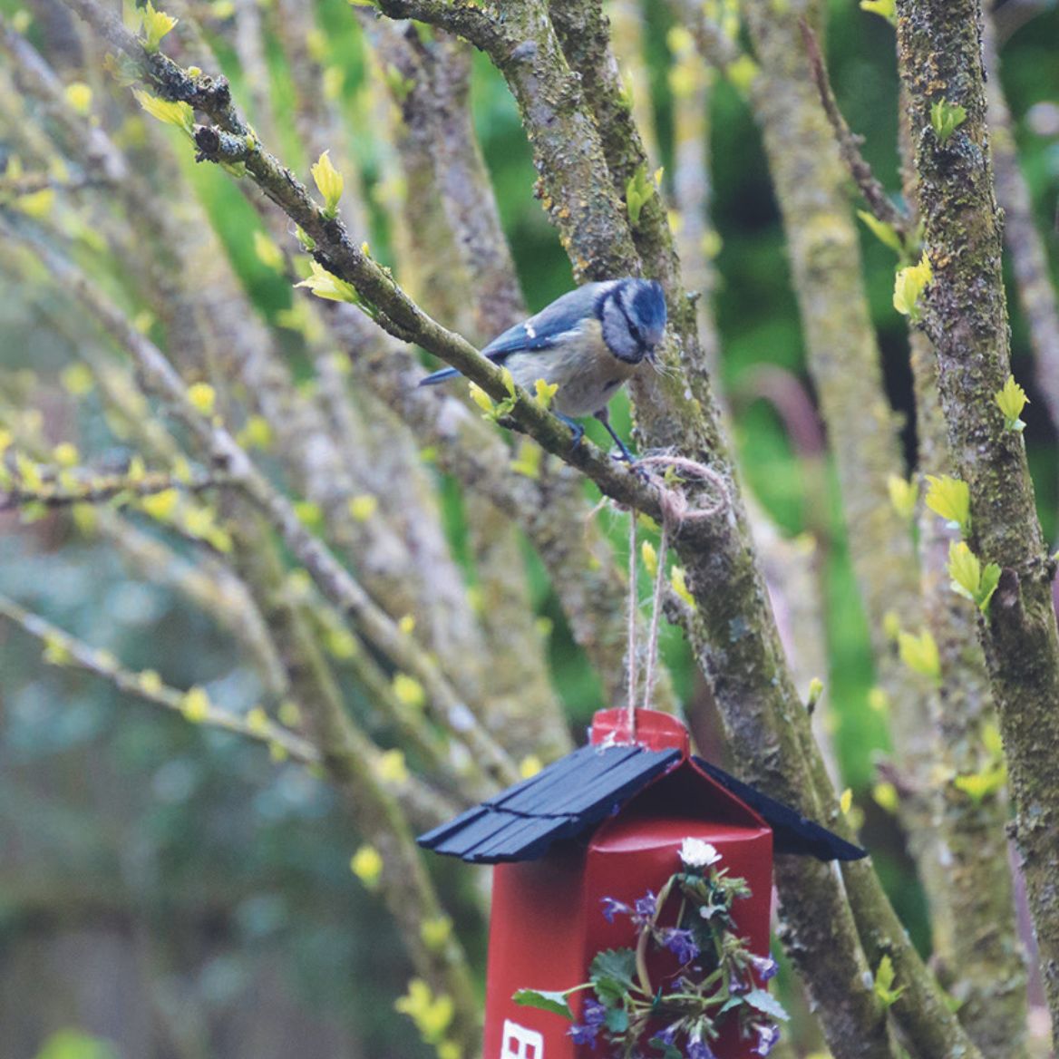 Dieses Vogelhaus hast du selbst gebaut und nun bietet es einer Vogelfamilie ein sicheres Zuhause.