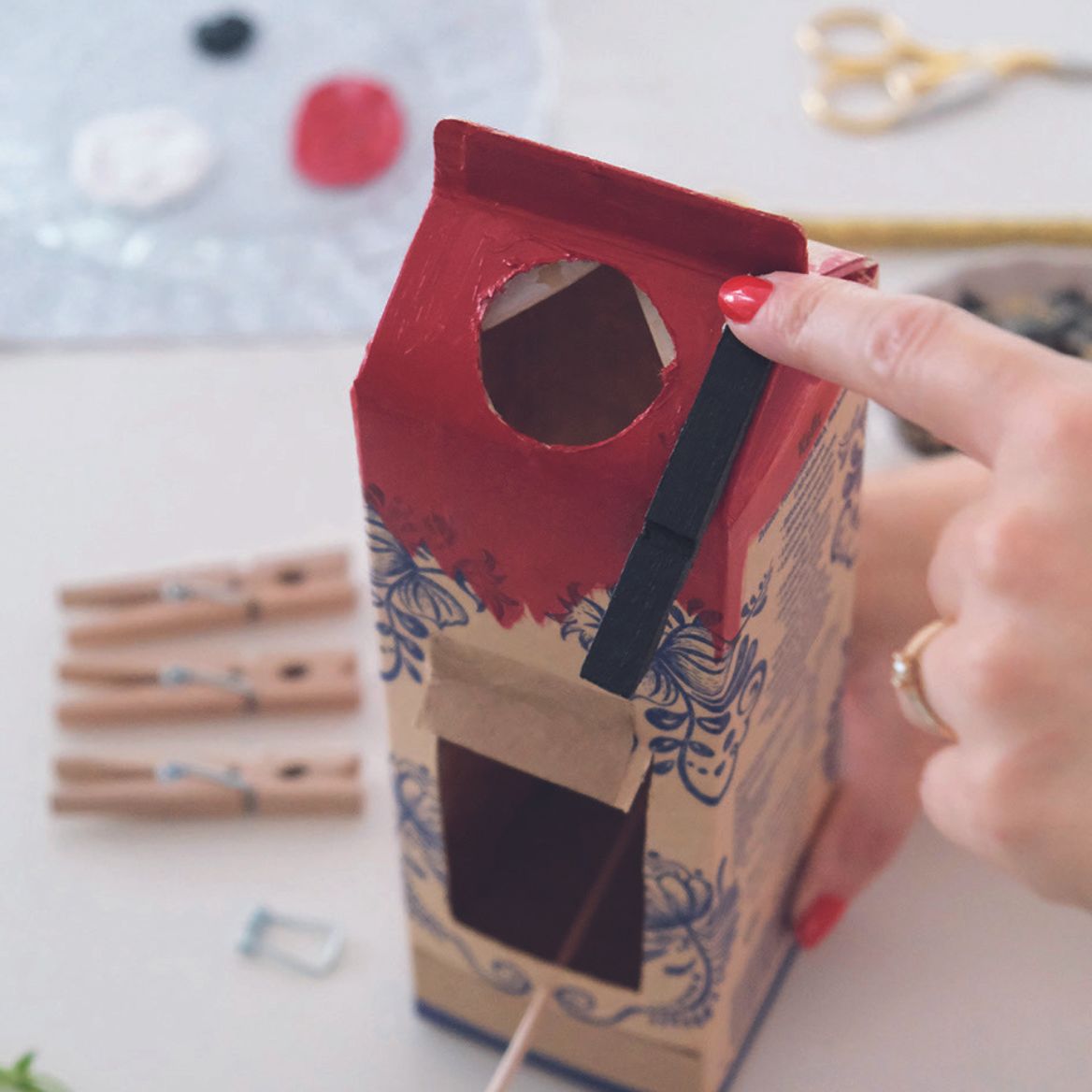 Doch auch aus einem einfachen Milchkarton kannst du wie Autorin Natascha ein schönes Vogelhaus im Schweden Look basteln.