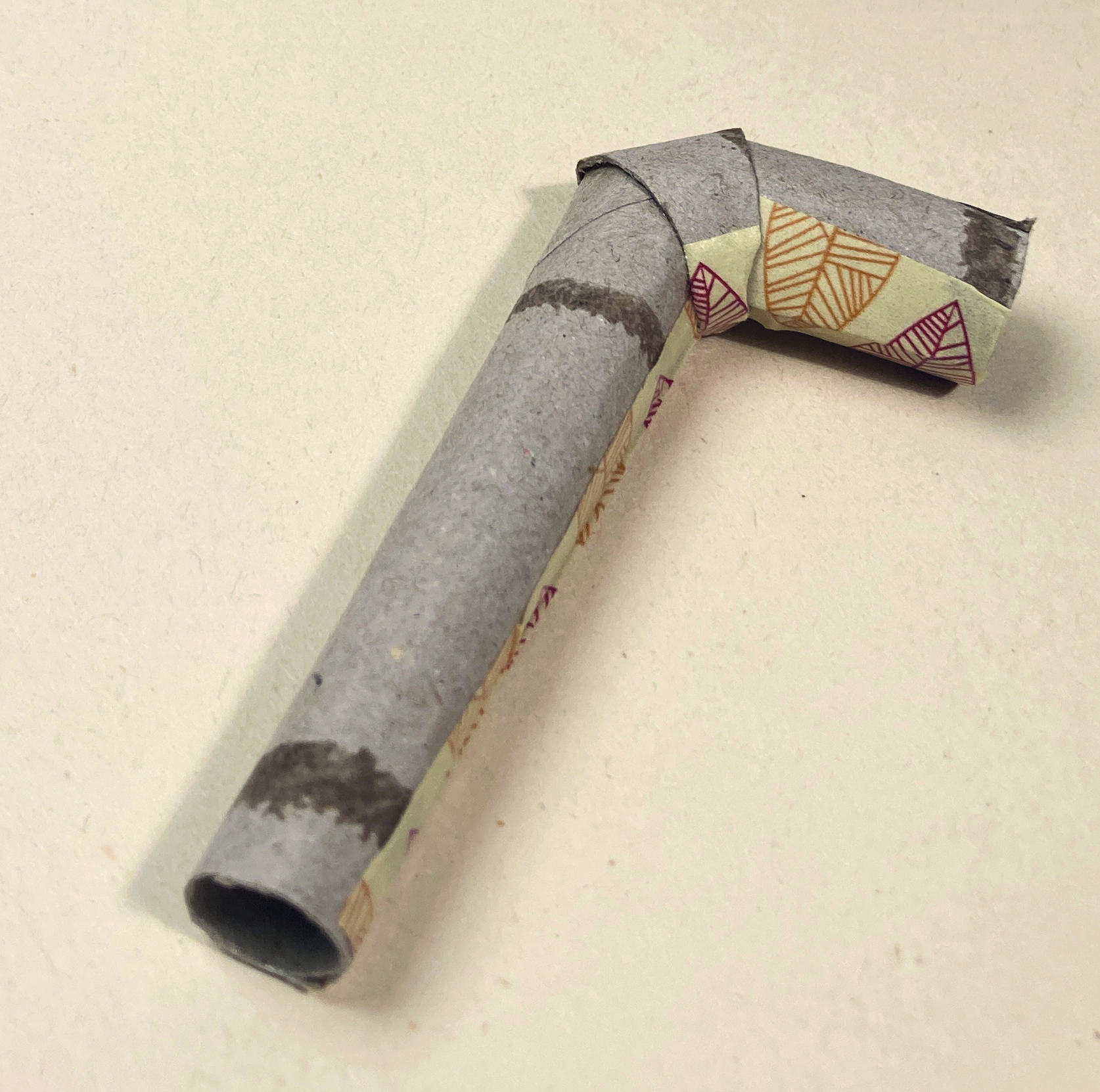 Klebe die drei Stücke für das Kaminrohr so zusammen, dass sich eine Biegung ergibt.