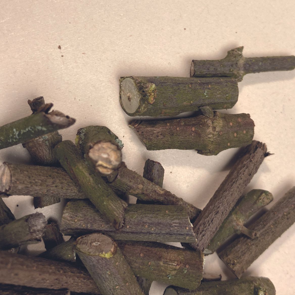 Schneide den Zweig in kleine Stücke & lege sie in den Kamin und die Aufbewahrung.