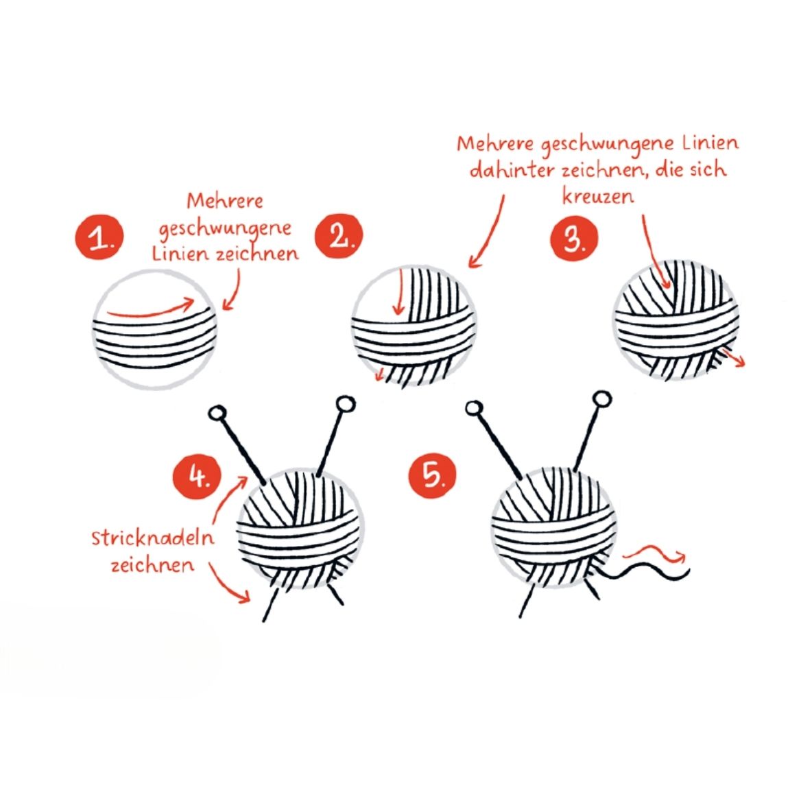 - Zeichne jetzt zwei Stricknadeln in den Kreis.