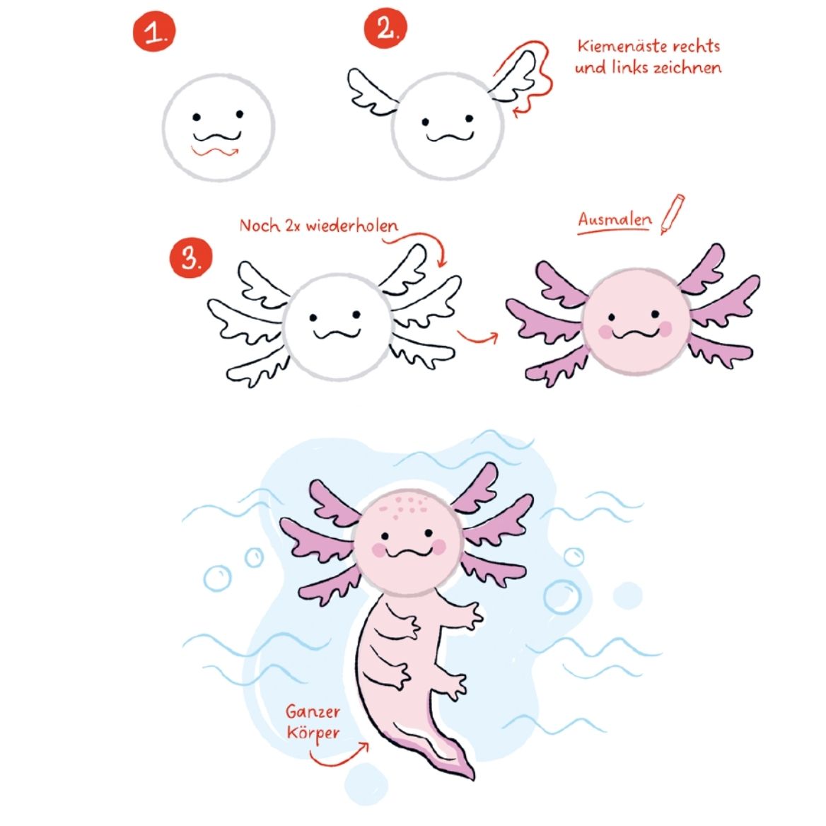 - Zeichnen mit Kreisen Anleitungen: Axolotl, Knopf und Wollknäul