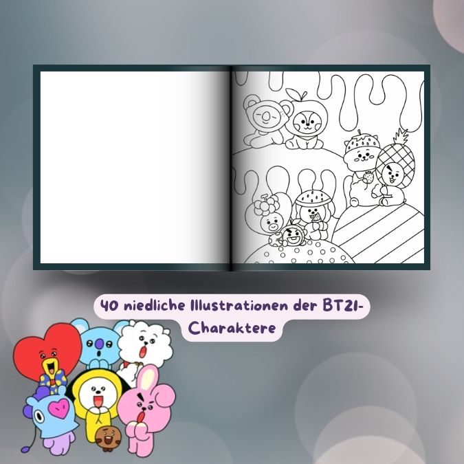 - 40 niedliche Illustrationen der BT21-Charaktere,
