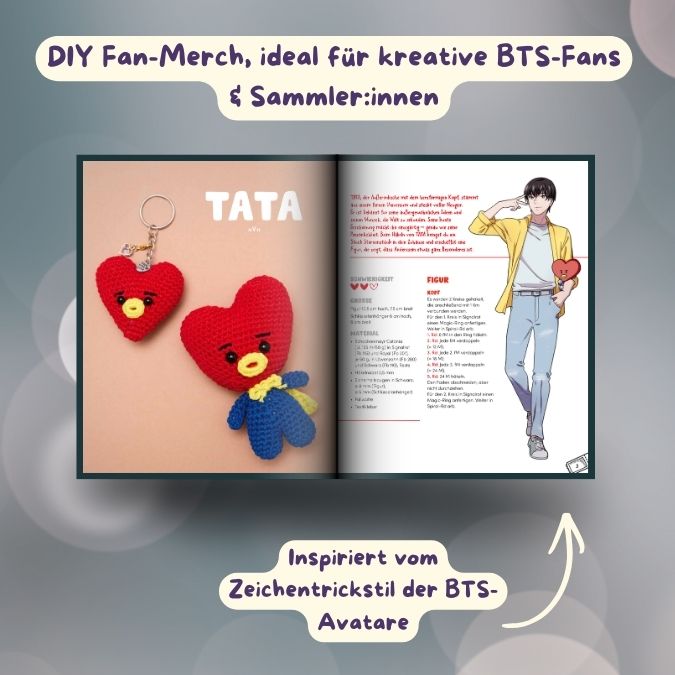 Sie sind zurück – die K-Pop-Sensation BTS erobert erneut die Bühnen der Welt und mit ihnen feiern auch ihre charmanten Comic-Avatare BT21 ihr großes Comeback! Dieses inoffizielle Häkelbuch bietet dir die Möglichkeit, deine ikonischen Lieblingsfiguren als detailreiche Amigurumi Figuren selbst zu häkeln – ideal für Fans, kreative ARMYs und Sammler:innen.