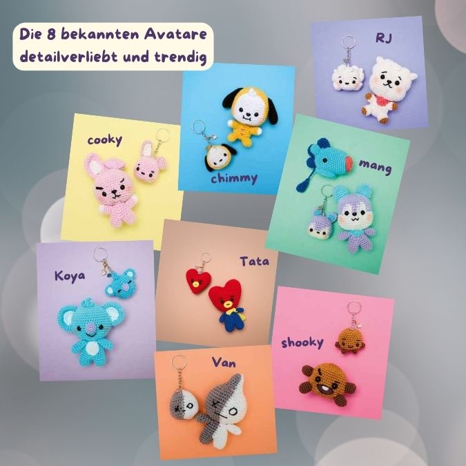 - alle 8 BT21 Charaktere als süße Amigurumi-Figuren zum Selberhäkeln