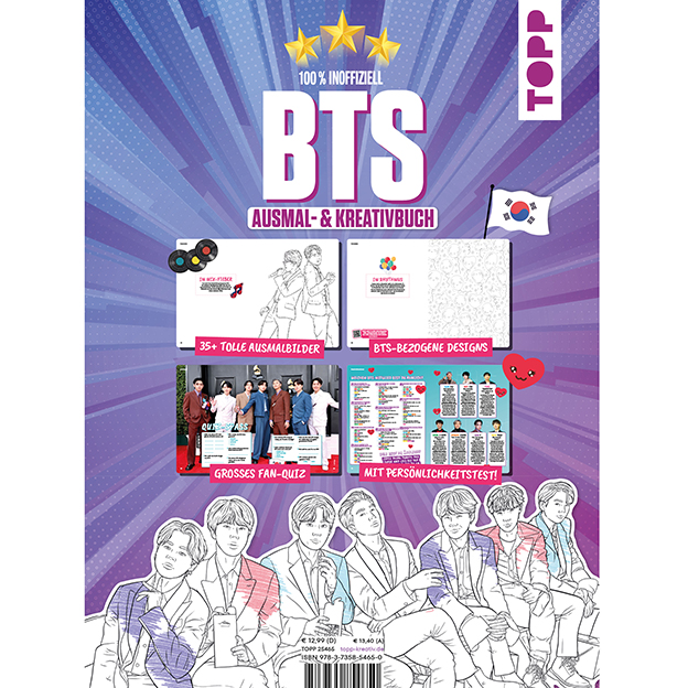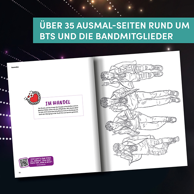 - über 35 Ausmal-Seiten rund um BTS und die Bandmitglieder