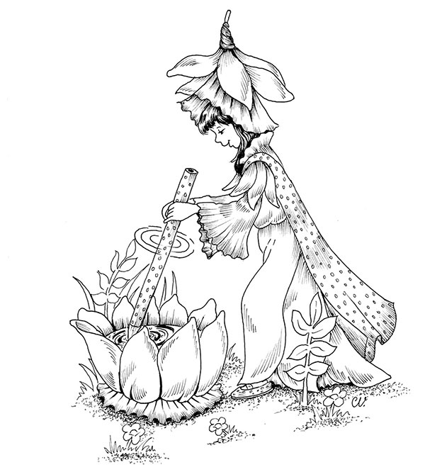 Im zweiten Band der Reihe besuchen wir das Reich der Elfen und Feen, die sich zwischen hohen Grashalmen und wunderschönen Blüten verstecken. Christl Vogls charmante Illustrationen sind detailreich und wecken Erinnerungen an früher. Begleitet werden ihre Zeichnungen von einer kleinen Geschichte in Reim-Form, die den Ausmalmotiven auf den linken Seiten gegenübergestellt ist.