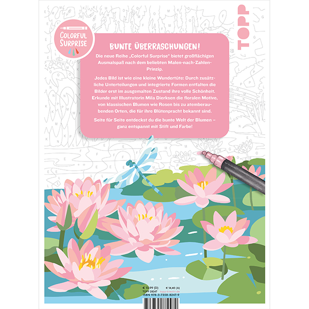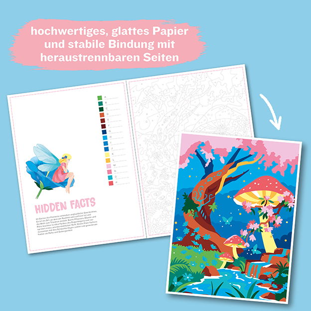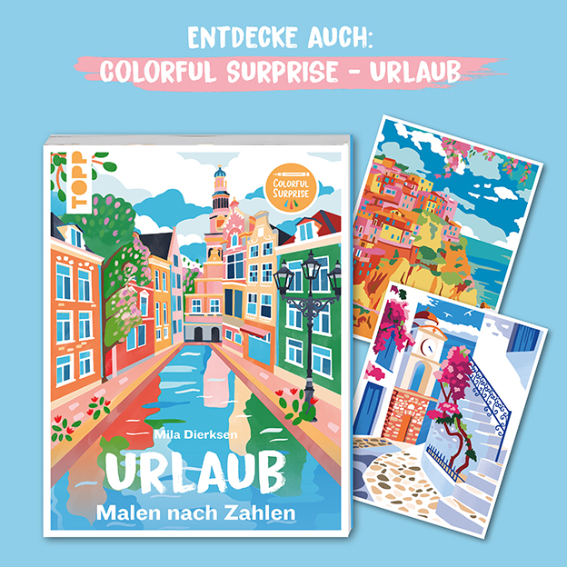 Die neue Reihe „Colorful Surprise” bietet dir nicht nur eine entspannende Auszeit vom Alltag, jedes der großflächigen Malen-nach-Zahlen-Bilder wartet zudem mit einer Überraschung auf: dank zusätzlicher Unterteilung der Felder und versteckter Formen, wird jedes Bild erst nach dem Ausmalen vollständig enthüllt.