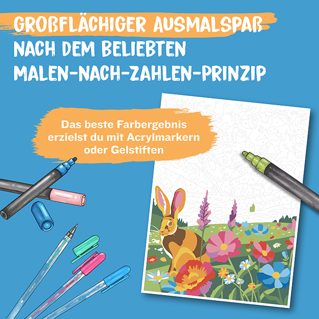 - 35 großflächige Malen-nach-Zahlen-Ausmalbilder mit Fernweh-Garantie