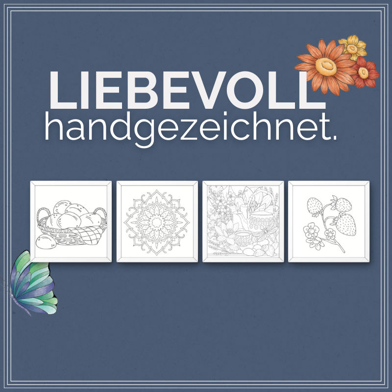 - über 80 kleine und große Illustrationen zum Ausmalen