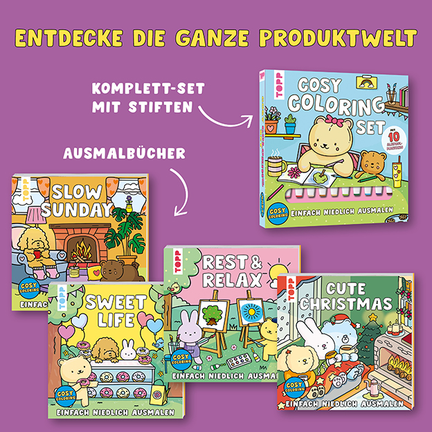 Slow Sunday bedeutet Cosy Time! Besuche die niedlichen Fellfreunde beim Stricken, beim Lesen oder im Garten. Beim Ausmalen der supersüßen Illustrationen kannst du entspannen und zur Ruhe kommen.
