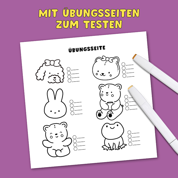 - mit zusätzlichen Vorlagen um Stifte und Farbkombinationen zu testen