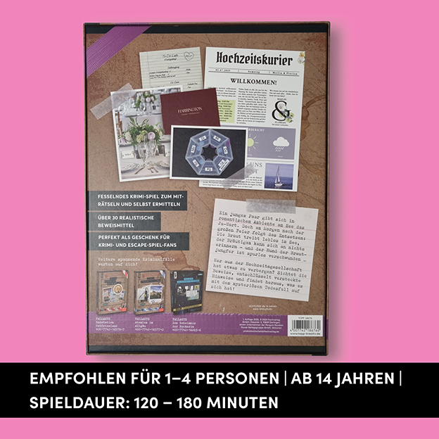 Wer hat in der Hochzeitsgesellschaft ein dunkles Geheimnis? Sichtet die Beweise, entschlüsselt versteckte Hinweise und findet den Mörder!