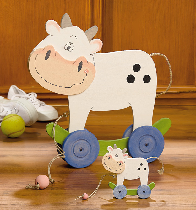 Spielsachen für Kinder (darunter Puppenwagen, Dinosaurus, Messlatte, Ziehtier, Tier-Puzzles, Fee, Fussball-Fan, Türschild, Lichtschäfchen)