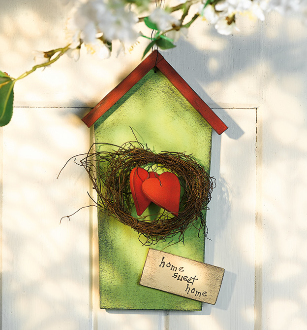 Dekorationen für Garten, Balkon & Terrasse (darunter Briefkasten, Türkranz, Türschild, Holzfiguren, Blumenkasten, Fensterdeko, Gartenstecker mit Windlichtern, Vogelhäuschen,)