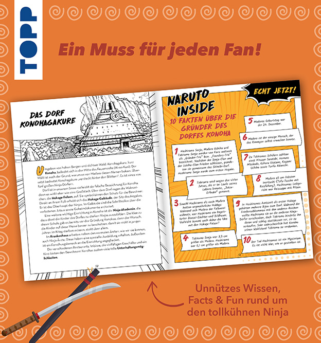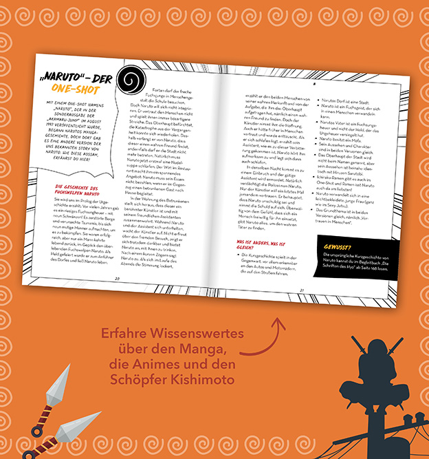 Der Manga-Klassiker Naruto ist weltweit erfolgreich und unglaublich vielschichtig und spannend. Dieses ultimative inoffizielle Fanbuch erzählt allerlei Interessantes, Erstaunliches und Wissenswertes rund um den Helden der Geschichte, den tollpatschigen Ninja Naruto, und lädt dazu, ganz im Geiste des Mangas kreativ zu werden und die eigene Fan-Leidenschaft auszuleben. Mit Hintergrundwissen zum Autor, den Mangas und Animes und vielen weiteren Adaptionen.