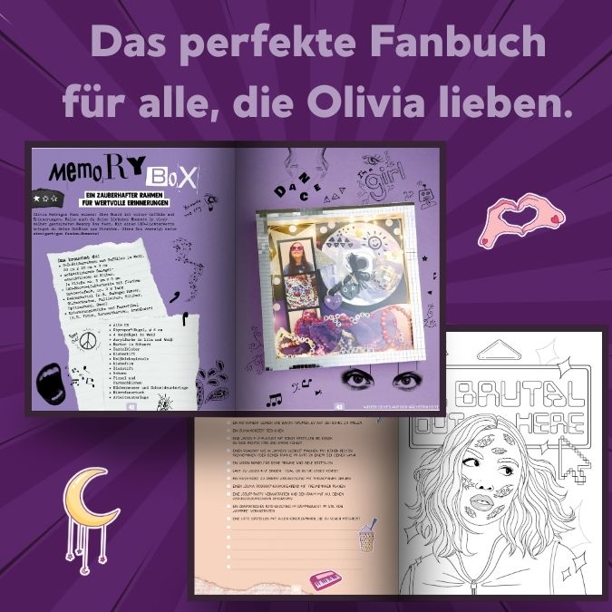 Olivia Rodrigo erobert die Musikwelt mit ihren emotionalen Hits und ihrer einzigartigen Persönlichkeit. Jetzt kannst du ihre Welt auf kreative Weise entdecken! Lass deiner Fantasie freien Lauf und male wunderschöne Porträts von Olivia mit inspirierenden Songtexten aus. Hol dir den Olivia-Spirit nach Hause mit coolen DIY-Projekten – bastle einen Glitzer-Cup, eine „Spill ur Guts”-Schmuckbox und vieles mehr! Teste dein Wissen über Olivia mit kniffligen Rätseln und spannenden Quizfragen – wie viel weißt du wirklich?