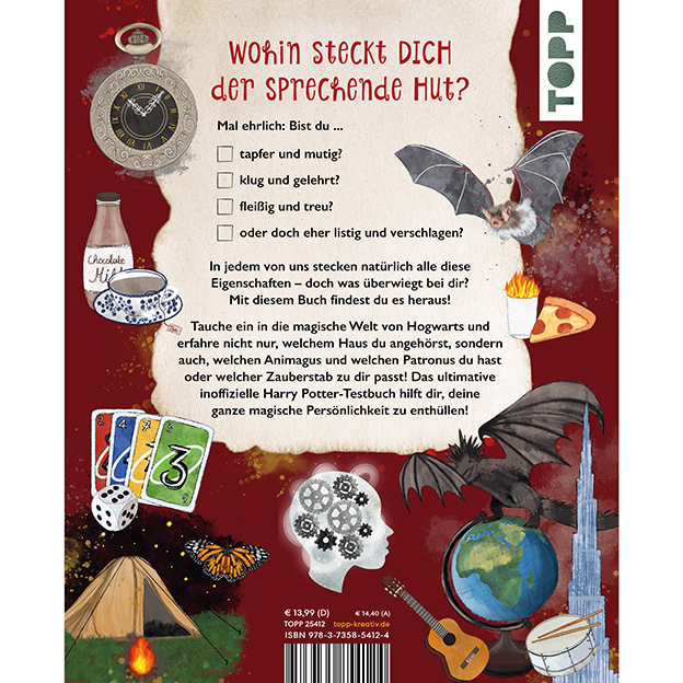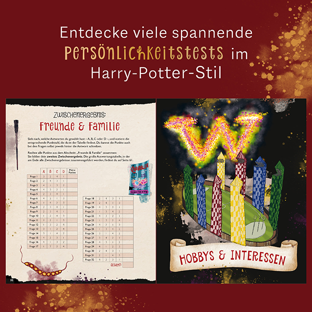 Finde es heraus und tauche ein in die magische Welt von Hogwarts! Mit diesem Buch kannst du nicht nur herausfinden, welchem Hogwarts-Haus du angehörst, sondern auch, welcher Animagus, Zauberstab und Besen zu dir passen! Worauf wartest du? Finde endlich heraus, ob du Team Gryffindor, Hufflepuff, Ravenclaw oder Slytherin bist!
