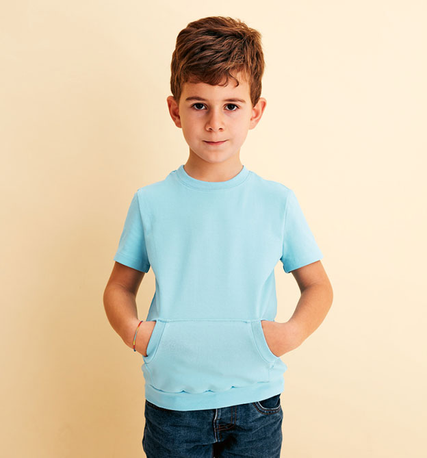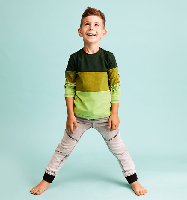 Jersey ist und bleibt ein beliebter Stoff für Kinderkleidung und insbesondere bei T-Shirts gibt es viele Varianten: Mit kurzen oder langen Ärmeln, Colorblocking, V-Ausschnitt oder Rundhals. Mit dem T-Shirt-Baukasten it der Kreativität keine Grenze gesetzt und die T-Shirts sind schnell genäht, passen un halten viel aus.