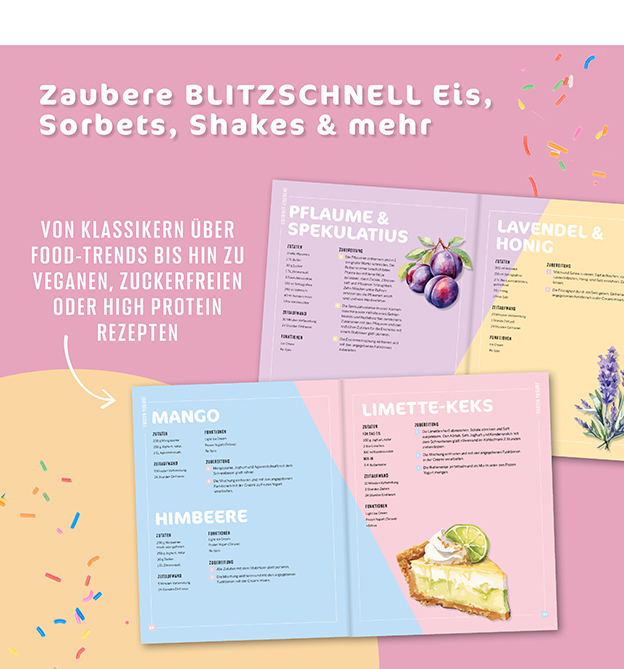 Eis, Sorbets, Shakes & mehr blitzschnell mit der innovativen Eismaschine gezaubert. 100% inoffiziell.