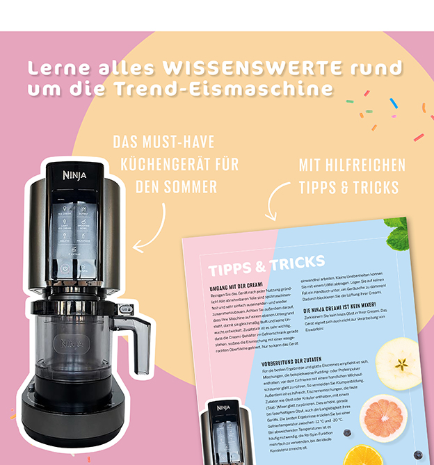 Die Ninja Creami ist keine gewöhnliche Eismaschine: Mit ihr lassen sich zahlreiche köstliche kalte Desserts in Sekundenschnelle und mit minimalem Aufwand zubereiten. Durch die vielseitigen Funktionen zauberst du mit der Ninja Creami oder der Ninja Creami Deluxe nicht nur köstliche Eiscreme, sondern auch fruchtige Sorbets, cremige Milchshakes und gesunde Smoothie Bowls!