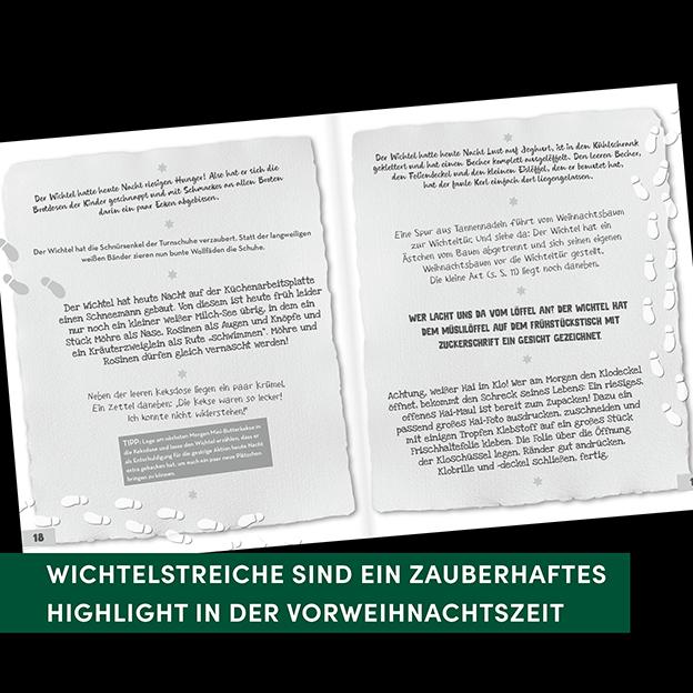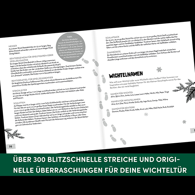 Wichtelstreiche sind ein zauberhaftes Highlight in der Vorweihnachtszeit und sorgen für magische Momente im Familienalltag. Das Beste: Sie lassen sich schnell und ohne viel Vorbereitung umsetzen! Alles, was du brauchst, sind ein paar Alltagsgegenstände – und natürlich kreative Ideen! Mit über 300 blitzschnellen Streichen bietet dieses Buch eine riesige Sammlung an lustigen und originellen Überraschungen für deine Wichteltür. Ob freche Streiche oder herzerwärmende Szenen – hier finden Wichtelfans alles, um die Adventszeit unvergesslich zu machen!