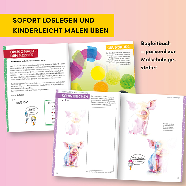 Das Übungsbuch ist die perfekte Ergänzung zu „Die Kunst des Malens für Kinder Malschule“. Es unterstützt dich dabei, Schritt für Schritt deine künstlerischen Fähigkeiten zu verbessern. Mit einer Vielzahl von Vorzeichnungen, die du fertig ausarbeiten kannst, und viel Platz für eigene kreative Ideen kannst du ganz leicht üben und ausprobieren.