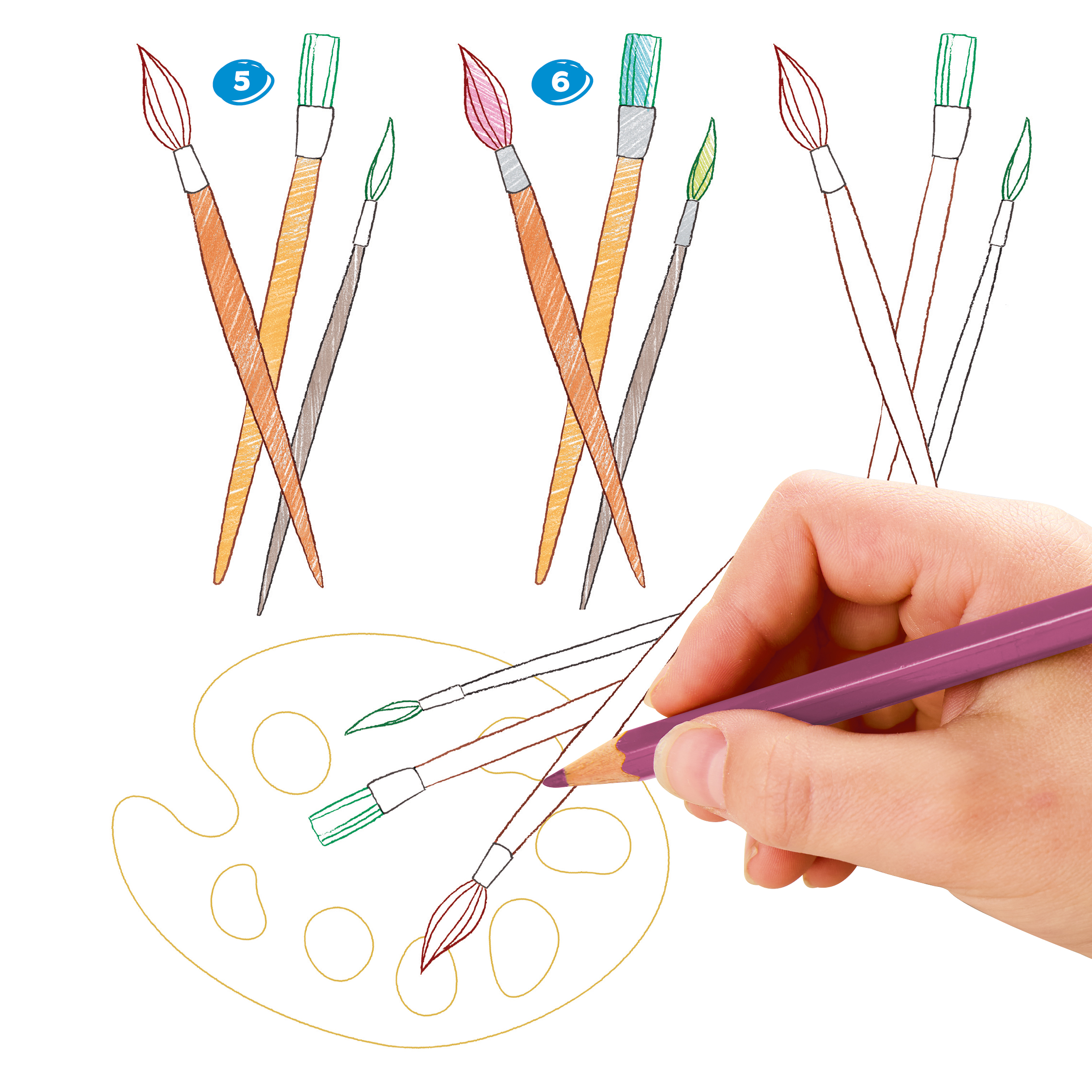 - Übungsseiten mit hilfreichen Vorlagen zum Weiterzeichnen