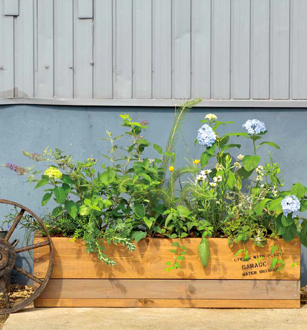 Die individuellen Einrichtungsstücke aus Holz harmonieren wunderbar mit verschiedenen Grüntönen. Für jedes Projekt werden deswegen passende Pflanzen empfohlen, frei nach dem Motto des Autorenteams „Leben mit Pflanzen“.