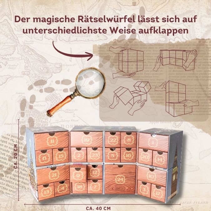 - 24 Schubladen mit spannenden Rätseln