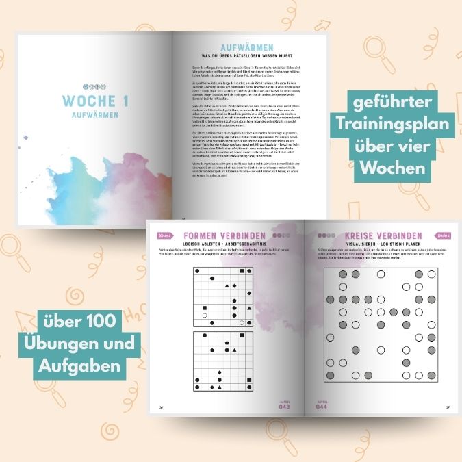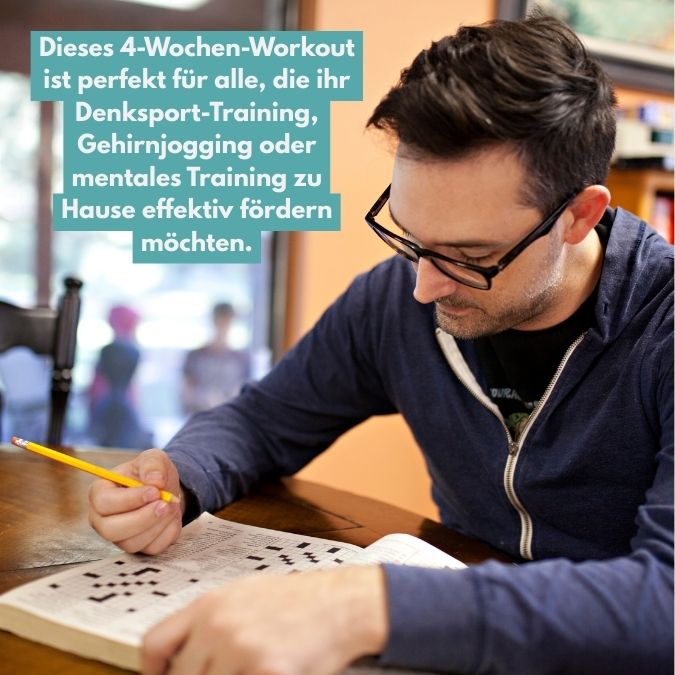 Dieses 4-Wochen-Workout ist perfekt für alle, die ihr Denksport-Training, Gehirnjogging oder mentales Training zu Hause effektiv gestalten möchten. Jede Woche bringt neue, anschaulich erklärte Übungen für maximale Lernerfolge und langfristige Ergebnisse.